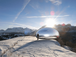 It looks like something out of a classic sci-fi film, but this is actually somebody’s house made to resemble a flying saucer that is hovering over the Earth’s surface in this Alpine village. It is nothing more than an optical illusion, but it must be serene living up here. This was achieved using an architectural concept known as the forced perspective. This technique manipulates our brains by employing a series of small adjustments that alter our depth perception making a space look larger, or smaller, or farther, or closer than they really are. Its curved design and oval windows on all sides creates this spaceship effect, because of the decorative windows that look like mirrors from the outside which are positioned to reflect whatever is outside.