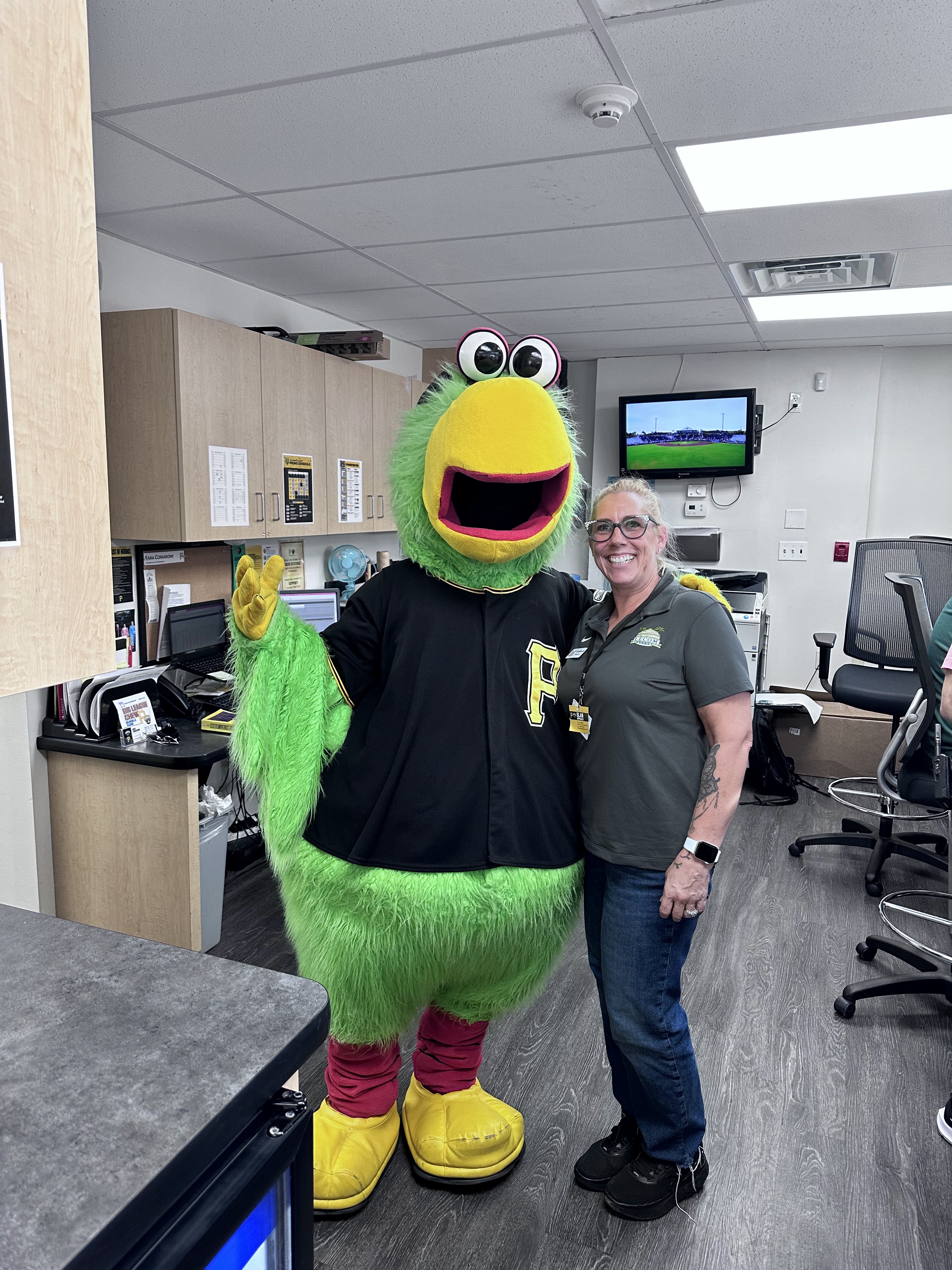 This is me and the mascot for the Pittsburgh Pirates. I really loved working in the box office for Spring Training and hope the minor league games will be fun too! I might be looking into another job, but we shall see……