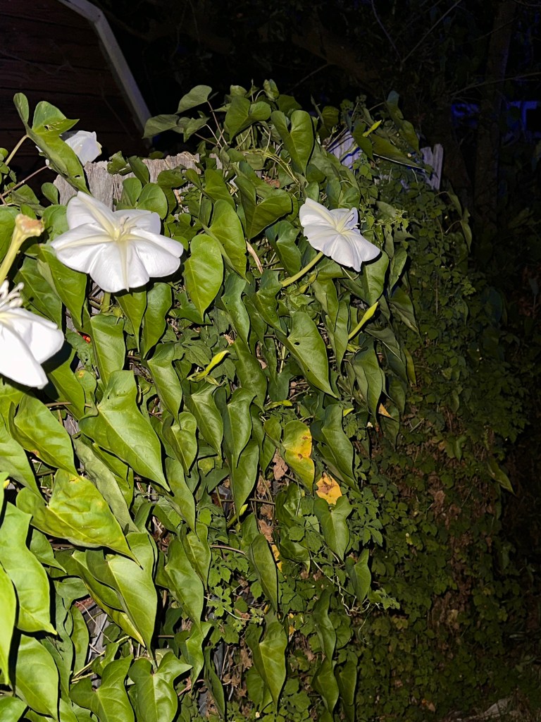 I saw these in full bloom the other night. I had never seen them up close and didn’t realize how beautiful they are. They bloom at night!